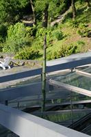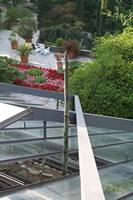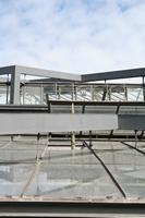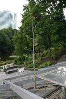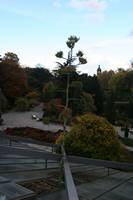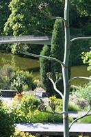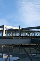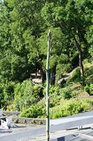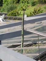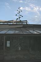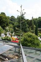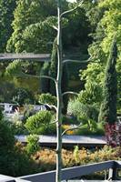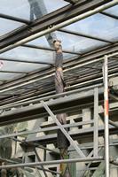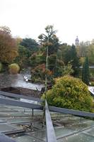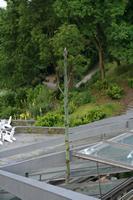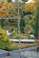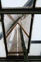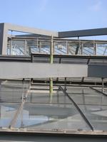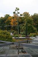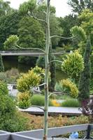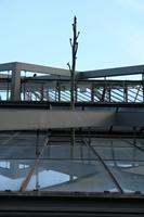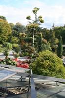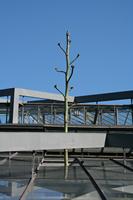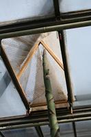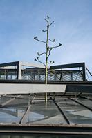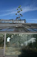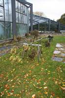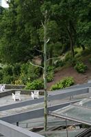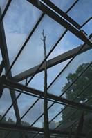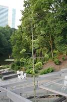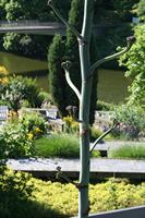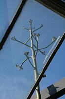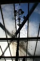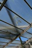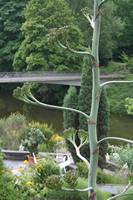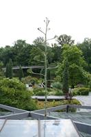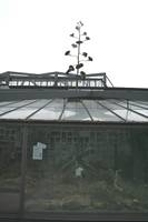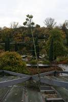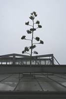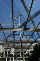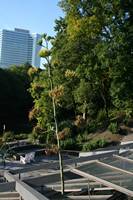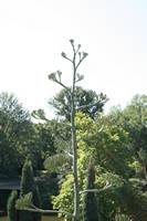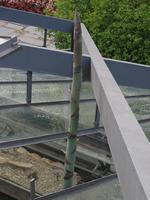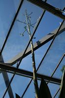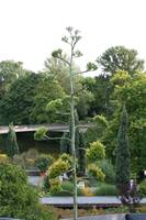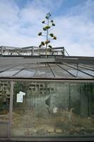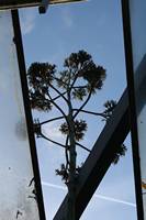 Die folgende Bildreihe zeigt die Entwicklung des Blütenstandes ausserhalb des Gewächshauses. Die Bilder wurden jeweils vom selben Standort und im selben Winkel aufgenommen - mit deckungsgleichen Oberkanten der Aussenträger. (Das erste Bild der Reihe zeigt beide Träger und dient zur Erklärung.) Ein Vergleich der Bilder ist jedoch nur bedingt möglich, durch den nicht identischen Bildausschnitt.