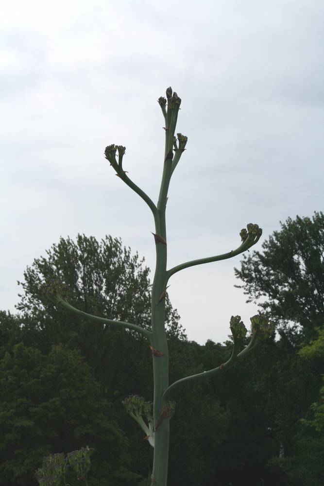 30.07.2012 - Detailansicht der Blütenstandsspitze, Ansicht von aussen (für Besucher nicht zugänglich, Bild aufgehellt)