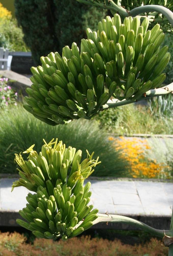 27.08.2012 - Detailansicht der Seitenäste mit offenen Blüten des 1. Monochasium um 15.57 Uhr Ansicht von aussen (für Besucher nicht zugänglich)