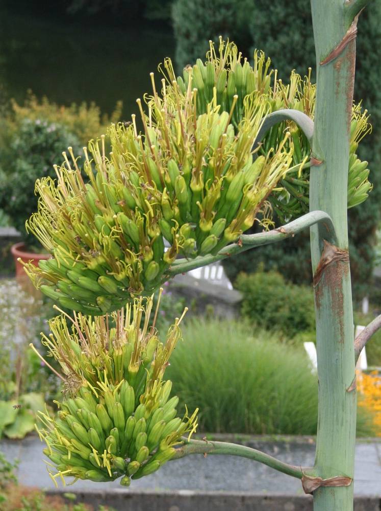 03.09.2012 - Detailansicht der Seitenäste mit offenen Blüten des 1., 3. und 4. Monochasium, Ansicht von aussen (für Besucher nicht zugänglich)